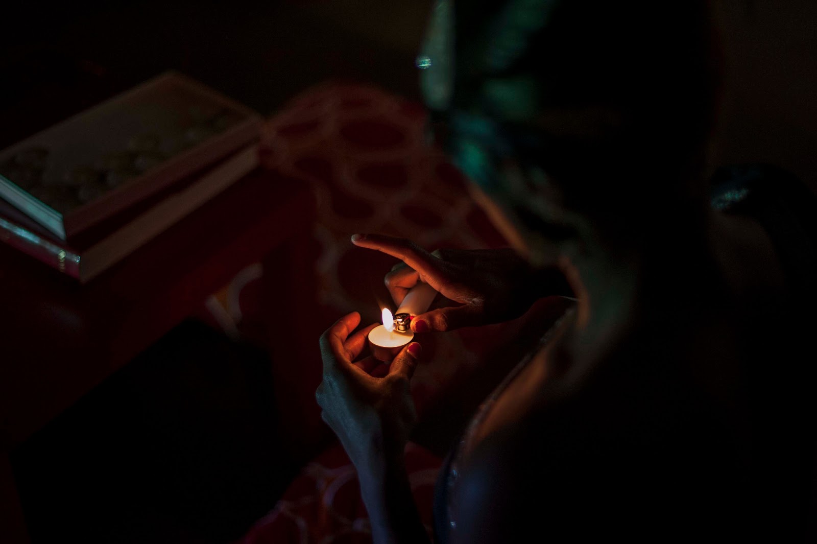 A mother clinging to her children.